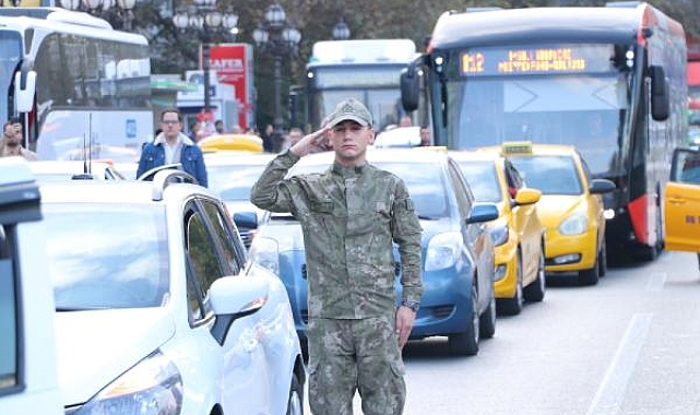 Atatürk’ün hayata gözlerini yumduğu 09.05’te sirenlerin çalmasıyla, aracında olanlar araçlarından inip saygı duruşuna geçti. Bazı sürücüler de kornaya basarak sirenlere eşlik etti.