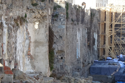Trabzon'un Pazarkapı mahallesi Kadınlar Hali yanındaki tarihi sur duvarlarının restorasyon çalışmaları sürüyor.