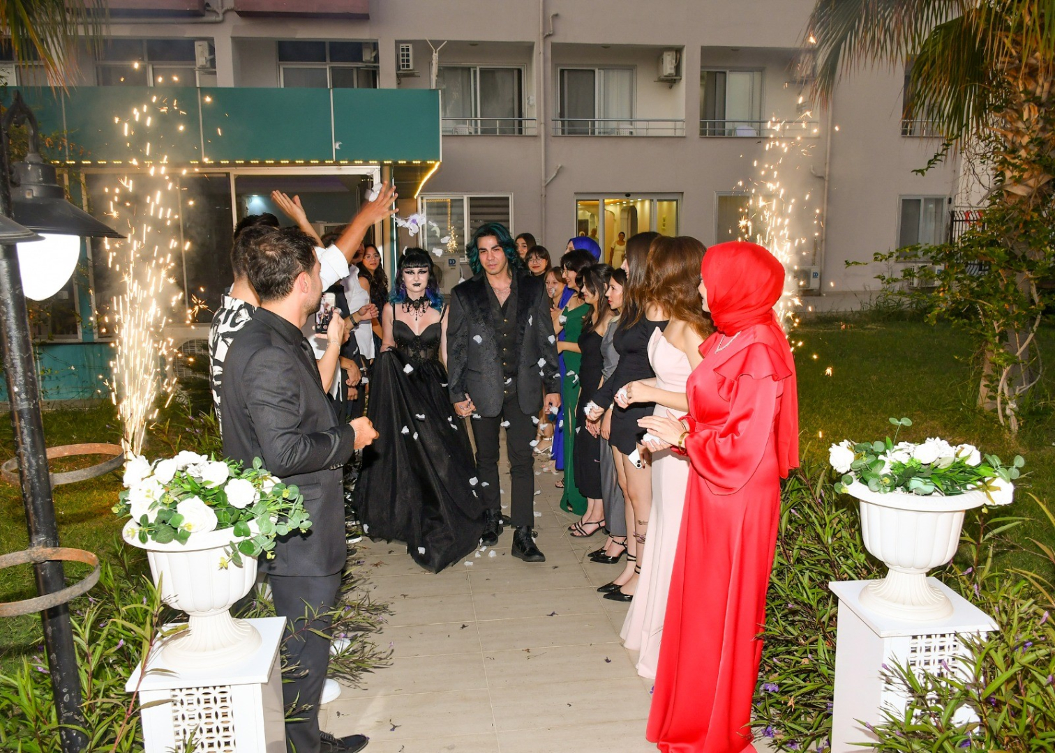 Türk geleneklerine göre gerçekleştirilen düğünde gelin Ella Marie, siyah gelinliğiyle dikkat çekerken, genç kadına kuşak ve kına merasimi de yapıldı. Gelin ve damat düğünde konuklarla bol bol oynarken, Ella Marie'nin ebeveynleri Cheryl Anne Schmitt ve Charles Harris Plat da düğüne katıldı.