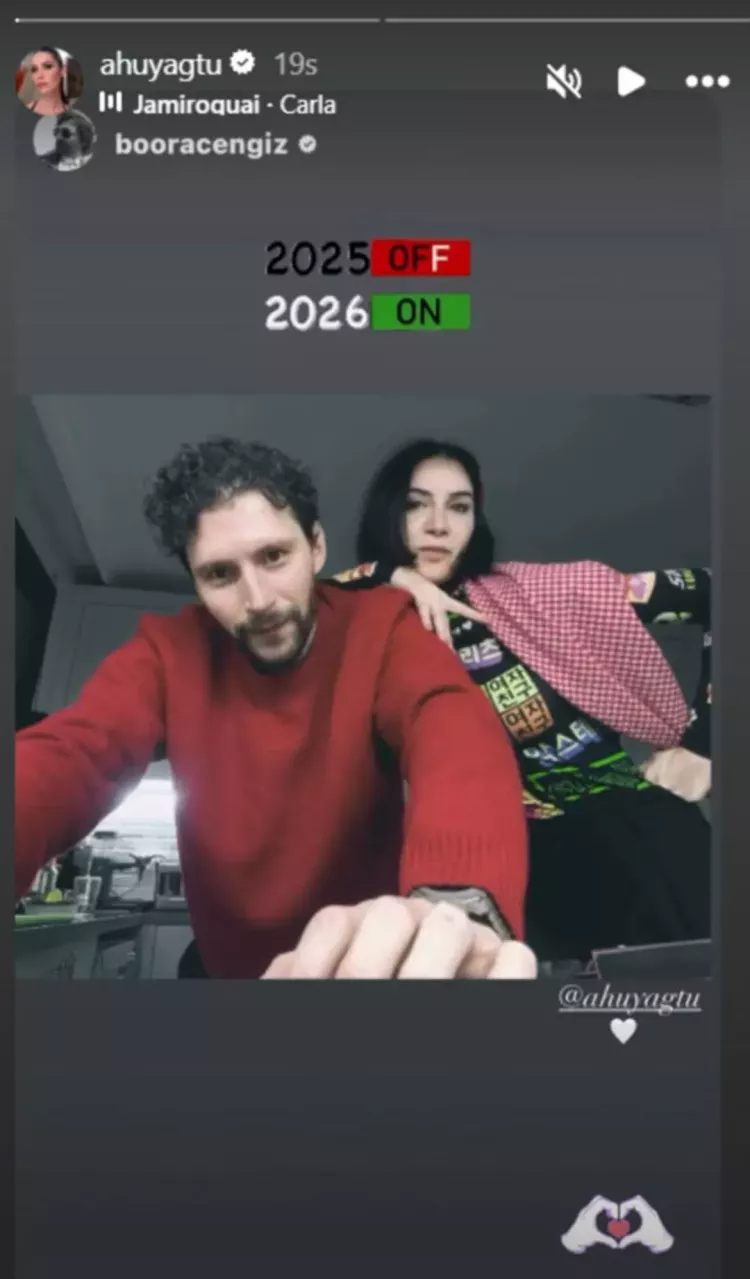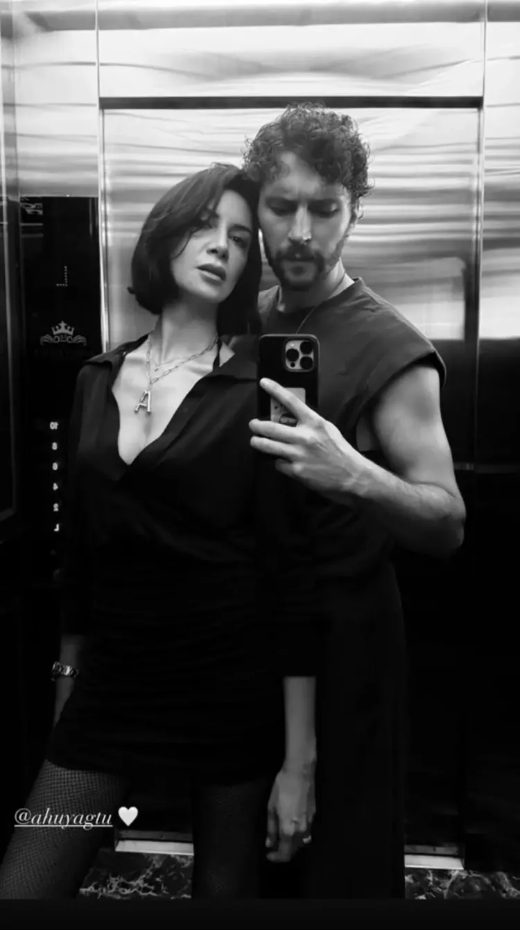 Kendinden 12 yaş küçük oyuncuyla ilişkisini göz önünde yaşamamayı tercih eden Yağtu, bu kez sosyal medyada yaptığı paylaşımla dikkat çekti. Ünlü oyuncu, Bora Cengiz ile asansörde çekilen romantik bir kareyi beyaz kalp emojisiyle yayınladı.