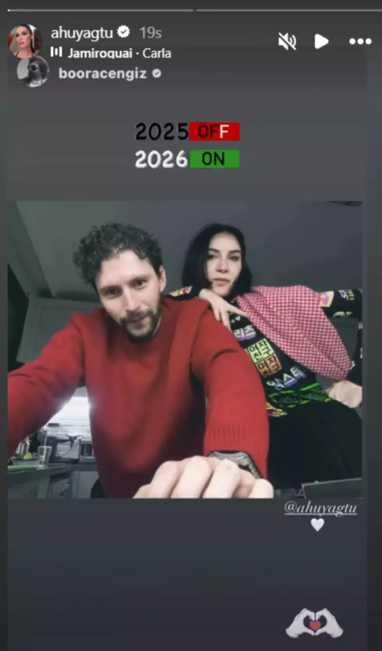 Kasım ayında aşk yaşadıkları öğrenilen Ahu Yağtu ve Bora Cengiz, ilişkilerini bugüne kadar gözlerden uzak tutmayı tercih etti. Çift, yeni yıl gecesinde bu sessizliği bozdu ve birlikte geçirdikleri anları ilk kez sosyal medyada paylaştı. Yeni yılı birlikte karşılayan ikilinin fotoğrafı, Bora Cengiz’in hesabından yayımlandı.