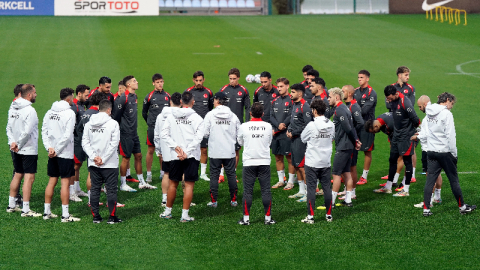 Merih Demiral tedbir amaçlı antrenmanda yer almazken; İsmail Yüksek ve Mert Günok sakatlıkları, Kerem Aktürkoğlu, Orkun Kökçü, Okay Yokuşlu ve Zeki Çelik ise yolculukları sebebiyle antrenmana katılmadı.