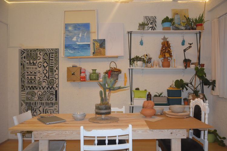 Resim ve sanat olan ilgisinin ilkokul yıllarında başladığını ifade eden Arslan, "Kiralık dükkanları incelemeye başladık ve küçük bir yer bulduk. Sonra Ünye'ye geldiğimde hızlıca o dükkana gidip tadilat sürecini araştırmaya başladım. Sonrasında aileme ait olan bu evi yapmamı söylediler. Bende buraya konum itibarıyla önce soğuk baktım çünkü tam merkezde olması daha ilgi çekici olabilir diye düşünüyordum ancak merkeze çok uzakta değildi ve atölyemin nerde olursa olsun merak edeni, atölyemde vakit geçirmek isteyenleri çok olacağına inandım, bu evi tadilat etmeye başladım ve inandığım gibi merak edeni, seveni de çok oldu. İlk 2 ay bir erkek arkadaşım destekçim oldu ve tadilatın büyük kısmını beraber ilerlettik, 2 ay sonra arkadaşım gitti ve bir iki ay da ben yalnız başıma tadilatı devam ettirmek zorunda kaldım, zorlandığım çok zaman oldu ama o kadar emek vermişken pes etmek istemedim zorlanmama rağmen devam ettim. Duvar sıvası, kapılar, pencereler, kapı eşikleri, zemin, tahmin edilmeyecek kadar tadilat vardı ve yaptık, duvar dekorları, boyasını tek başıma yaptım, bir evin boyasını bile bir kişinin yapması zorken daha bir sürü işi kendim yapabilmem beni de sevindirdi tabi. Büyük tadilatlar gittikten sonra ziyaretime gelen arkadaşlarım kapıları pencereleri boyamama yardım etti, bir elin nesi var iki elin sesi var demişler bir haftada tek başıma boyayamazdım iki günde hep beraber boyadık bitirdik. 5. ayda eşya yerleştirecek bir hal aldırdım ve 2 aydır eşyalarını tamamlıyorum, dekorasyonunu düzenliyorum, eksiklerini tamamlıyorum. Şimdi üretmek istediğim tablolarımı atölyemden ilham alarak üretme zamanı. Şu an içerisinde yedi ayın sonunda evin çalışmalarının bitmesiyle sanatımla uğraşıyorum" diye konuştu.