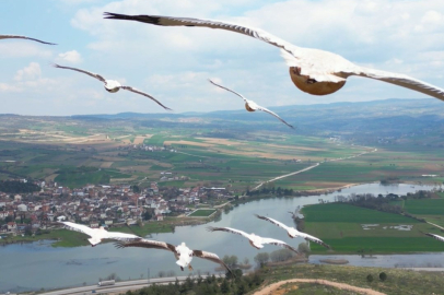 İnegöl Belediyesi Basın Halkla ilişkiler ekipleri, pelikan sürüsünü drone'la görüntüledi.
