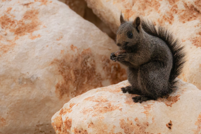 Bursalı doğa fotoğrafçısı Ömer Ahu tarafından Tunceli'nin Pülümür ilçesinde görüntülenen melanistik sincap, diğer sincaplarla kıyaslandığında koyu ve siyah kürküyle göze çarptı.