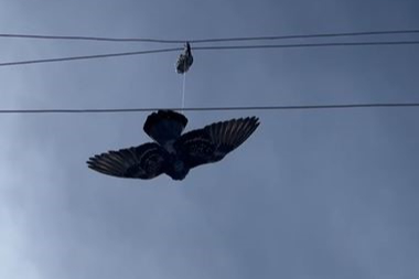 Hanak ilçesine bağlı Selamverdi Mahallesi'nde bilinçsizce ayağına ip bağlanıp bırakılan Güvercin yüksek gerilim elektrik hattına takıldı. Elektrik tellerinde asılı kalan güvercini gören vatandaşlar ihbarda bulundu.