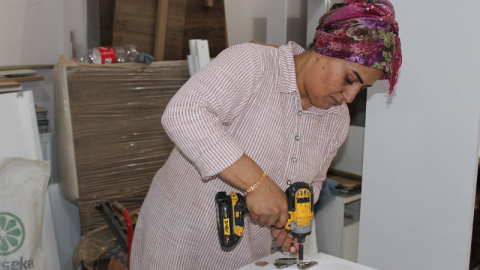 Mobilya ustası Şükran Yalmaç, işletmesini babasının vefatından sonra kendi imkanıyla kurdu. Küçük yaşlarda babasının mobilya dükkanında çırak olarak çalışan Yalmaç, kurmuş olduğu iş yerinde tek başına hem mobilya üretimi hem de tamiratını yaparak ev ekonomisine katkı sunuyor.