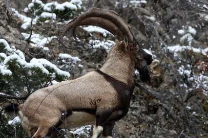 Koruma altında bulunan yaban keçileri, Munzur Dağları'nın, Erzincan sınırındaki karla kaplı bölgesinde görüntülendi.