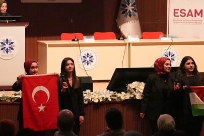Rektör Çakmak’ın ardından söz alan ESAM Müdürü Doç. Dr. Kübranur Çebi Karaaslan ise Filistin halkına destek vermenin hem tarihi hem de vicdani bir sorumluluk olduğunu belirterek: "Bu tür etkinliklerin, farkındalığı artırarak Filistinli kardeşlerimizin davasına güç kazandıracağına ve bu davayı unutturmayacağına olan inancımız tamdır. Zulme karşı sesimizi yükseltmek, mazlumların yanında durmak en temel görevlerimizden biridir. Çünkü adaletin olduğu bir dünya için susmak değil, harekete geçmek gerekir. Bugün burada, Gazze’nin geçmişini anlamak, mevcut durumunu değerlendirmek ve geleceğe dair umut dolu senaryolar üretebilmek adına önemli bir zemin oluşturmayı amaçlıyoruz. Bu amaç doğrultusunda Panelimizde, alanında uzman akademisyenler Gazze’nin tarihi, mevcut durumu ve bölgedeki siyasi dengeler üzerine değerli görüşlerini bizlerle paylaşacaklar. Hep birlikte, geçmişten ders alarak, bugünü doğru okuyarak ve geleceğe umutla bakarak, Gazze’nin yarınını değiştirecek çözümler üretmek zorundayız çünkü kuvvet bir olmaktan doğmaktadır. Bir kelebeğin kanat çırpışı, dünyanın öbür ucunda fırtınalar koparabilmektedir. İşte bizde tam bu noktada bir kelebeğin kanat çırpışındayız. Çünkü biliyoruz ki, küçük görülen adımlar büyük değişimlerin habercisidir" şeklinde konuştu.
