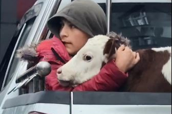 Artvin'in Kemalpaşa ilçesinde 13 yaşındaki İlkay Dursun Üçüncü, hasta olan buzağısını "Korkmasın" diye veterinere kamyonetin kasasında sarılarak götürdü.