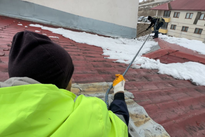 Yüksekova ilçesinde kar yağışının ardından çatılarda biriken kar kütleleri bazıları için ekmek kapısı oldu. Çatılarda biriken kar kütlelerini beline bağladığı iple temizleyen Nevzat Bingöl ve İslam Akdoğan, ekmeklerinin ipin ucunda olduğunu söyledi. Nevzat Bingöl ve İslam Akdoğan, beline bağladığı iple tüm tehlikelere rağmen çatılardaki karları temizledi. Bingöl ve Akdoğan, Esenyurt Mahallesi'nde bulunan binalarda görevli olduklarını belirterek, bu yapılan çatı temizliğinde kendilerine ek mesai yazıldığını söyledi. Soğuk havaya rağmen bu hizmeti verdiklerini belirten Nevzat Bingöl, "Biz burada bina görevlisiyiz. Malum günlerdir kar yağışı vardı ve çatılarda kar ve buz kütleleri birikti. Bizde arkadaşla 9 katlı binanın çatısına çıkarak tüm zorluklara ve soğuk havaya rağmen belimize bağladığımız iple karları ve buzları indirdik. Buradan hiç kimsenin sıkıntı yaşamaması için çalışmamızı sürdürüyoruz. Bize desteklerinden dolayı bina yönetimine de teşekkür ediyoruz. İnşallah bu da kısa sürede biter" dedi.