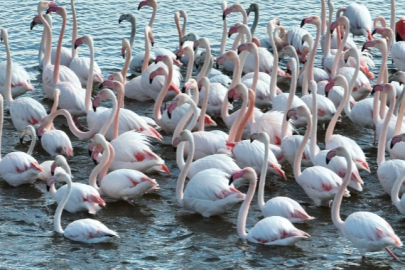 Göçmen kuşların en zarif temsilcilerinden kırmızı flamingolar, Kapadokya'da dron ile görüntülendi.