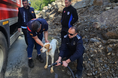 Artvin'in Arhavi ilçesinde uçurumda mahsur kalan görme engelli köpek, itfaiye ekiplerince kurtarıldı.