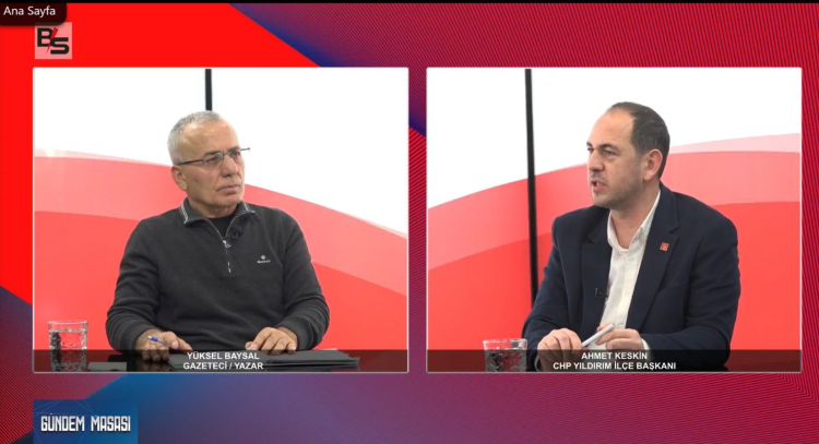 Sosyal medyada gördüm. CHP Yıldırım İlçe Başkanı Ahmet Keskin 15 gün önce Gazeteci Yüksel Baysal’ın bursasaati.com’da hazırlayıp sunduğu “Gündem Masası” programına katılmış.