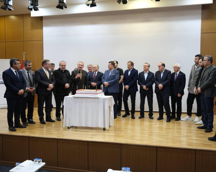 Üniversitenin Mütevelli Heyeti Başkanı Gıyasettin Bingöl’ün ev sahipliğinde kampüste düzenlenen ve akademik kadro ile idari birimlerin yöneticilerinin katıldığı yıl dönümü kutlamasında, pastayı Rektör Prof. Dr. Emin Karip, Danışma Kurulu Başkanı Prof. Dr. A. Saim Kılavuz, Mütevelli Heyeti Üyeleri eski Başbakan Yardımcısı Hakan Çavuşoğlu, Prof. Dr. Atilla Eriş, Kutbettin Bingölbalı, Yasir Bingöl, Ömer Bingöl, Ahmet Bingöl, eski Bursa Milletvekili Hayrettin Çakmak, Genel Sekreter Ali Mollasalih’le birlikte kestiler.